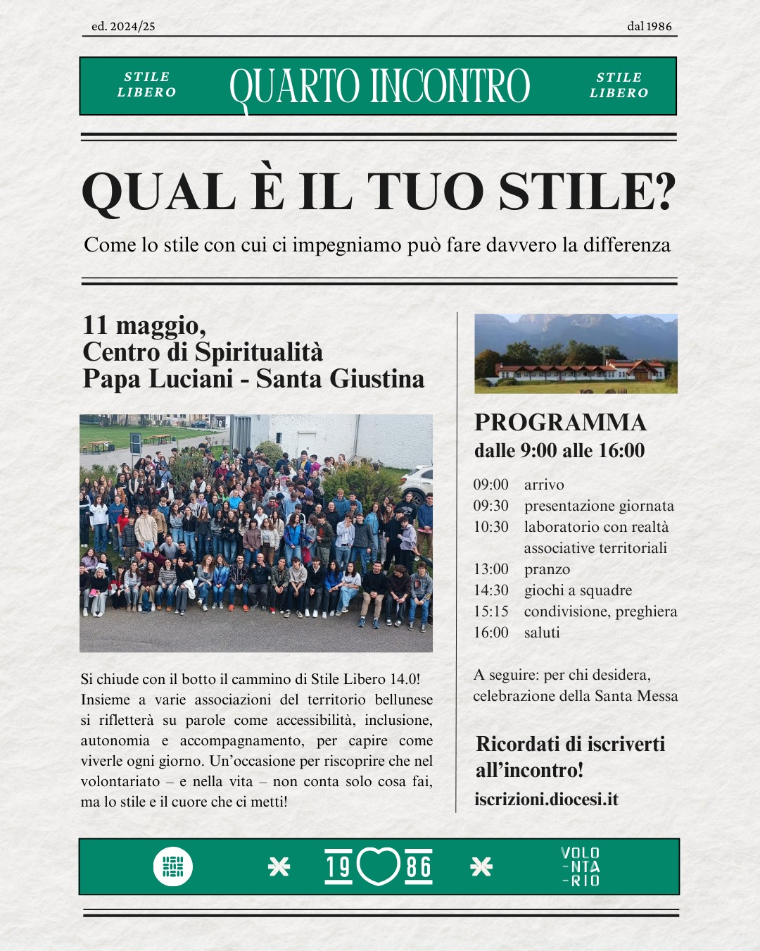 - domenica 11 maggio 2025, Centro di Spiritualità Papa Luciani (Col Cumano, BL) Iscrizioni Informazioni